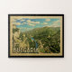 Design de Bulgária Alemanha no estilo das viagens vintage que caracteriza uma vista vasta lindo do país com montanhas e rio.