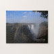 Victoria Falls 2 impressões e presentes horizontais apresentam uma bela fotografia colorida de Victoria Falls ou Mosi-o-Tunya (a fumaça que Thunders) com um arco-íris sendo lançado em um brilhante céu azul de África, tirado por Kurt Keller com uma câmera de 35 mm no Zimbábue, em um Safari Africano. Victoria Falls é uma das sete maravilhas naturais do mundo. Trata-se de uma cascata majestosa no rio Zambezi, na África Austral, entre os países da Zâmbia e do Zimbabué.