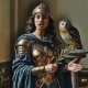 Vigília Silenciosa de Minerva - Deusa Romana. Essa composição ricamente texturizada reimagina Minerva em seu santuário, cercada por símbolos de seu intelecto e autoridade. Uma coruja e um ramo de oliveira povoam o espaço, criando uma narrativa em camadas da solidão divina e do poder latente. Uma meditação visual no eterno relógio mantido por aqueles sobrecarregados com visão, e a força silenciosa que ela exige.