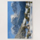 Quebra-cabeça de serra de vaivém com a igreja e a vila pequena de Sankt Magdalena (papai noel Maddalena) no Villnoesstal (vale de Funes dos di de Val) em Tirol sul, Italia, na neve durante o inverno.
