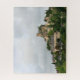 Quebra-cabeça de serra de vaivém com o castelo e a vila de Turenne medieval situados em um monte perto do rio de Dordogne, Correze em France. É uma das vilas as mais bonitas em France.