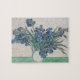 Este quebra-cabeça apresenta a famosa pintura de irítos roxos de Vincent Van Gogh.