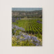 O Quebra-cabeça natural da California Vineyard e Purple Flowers faz excelente aniversário ou ideia de presente de feriado. Este quebra-cabeça apresenta uma fotografia cênica de campos de uva verde com flores roxas no primeiro plano localizado no país vitivinícola de Napa Valley, Califórnia.