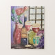 Uma bela pintura de vida morta de vinho, rosas, uvas e vasos de cor rica profunda que brilham na luz da janela.