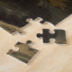 Impressão de um gato preto e uma abóbora de uma lanterna esculpida no Halloween em uma luz de velas escura e assustadora. Um presente excelente de Halloween para amantes de gatos e puzzlers.