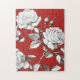 This jigsaw puzzle features beautiful vintage-inspired soft white roses and trailing leaves on a rich crimson red backdrop. The classic floral motif is both timeless and bold—romantic with a hint of drama. This pretty puzzle is ideal for anyone who loves gardening, flowers, nature, or piecing together puzzles.