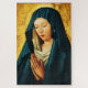 O fundo comum e escuro contrasta com a cabeça radiante da Virgem e com a morada branca que a cobre, e as mãos dela são cuidadosamente fechadas.