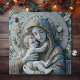 Virgem Maria com Jesus Bebê em um estilo 3D de mosaico azulejo. Quebra-cabeça de Arte Cristã Religiosa.