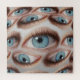 Fundo abstrato psíquico de padrão de olhos distorcido com um olho grande olhando olhos reais com cores azuis salpicam fundo abstrato psicodélico com padrões de olhos distorcidos em cores azuis. Uma experiência surreal! Surreal com um padrão de olhos distorcido em vários tons azuis. olho, fundo, psicodélico, globo ocular, estranho, padrão, muitos, assustador, mulher, textura, decoração, moda, moça, branca, retrô, verde, azul, maquiagem, tecido, moderno