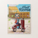 Visite o poster de viagens de desenho animado de Roma - Roma Itália, robotizando o cartão de viagem de patinete.