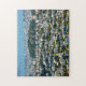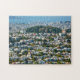 Esta é uma visão ampla das muitas casas na cidade de São Francisco. Isso torna um quebra-cabeça desafiador devido às muitas casas e paisagens semelhantes. A ilha de Alcatraz está distante.
