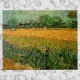 A visão de Arles com Irlandeses no Primeiro Plano de Vincent van Gogh é uma pintura típica de paisagens de apos impressionismo de arte. Um campo de trigo com flores de íris roxas no primeiro plano numa fazenda. Árvores e a cidade de Arles com casas estão no fundo. Sobre o artista: Vincent Willem van Gogh (1853-1890) foi um dos mais famosos pintores Post Impressionistas de sua era. Seu trabalho foi muito notável por sua beleza áspera, honestidade emocional e cor ousada.
