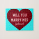 Você está procurando uma maneira divertida e especial de pop da pergunta? Não olhe mais! Surpreenda sua querida com esta única quebra-cabeça de proposta com um coração de creme sobreposto pela pergunta "Você me casado?" em uma fonte em estilo de bloco. Personalize com seu namorada ou namorado. Escolha o estilo da fonte, o tamanho, a cor e a cor de fundo.