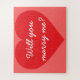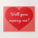 Este quebra-cabeça de quebra-cabeça apresenta um coração vermelho moldado, sobreposto pelo texto do modelo, "Você vai me casado?" em uma fonte branca e cursiva. Personalize com seu namorada ou namorado. Personalize o estilo, o tamanho e a cor da fonte, bem como a cor do plano de fundo.