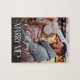 Peça-lhe que o casado com quebra-cabeça personalizados. Design apresenta fotografia de solteiro, script de tipografia ''Você vai me Casado? em letra de tendência. Personalize com um nome.