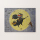 É a hora das bruxas e todas as bruxas respeitáveis estão fora e com suas famílias! Esta bruxa em particular tem bastantes com ela enquanto ela pega voo entre um maravilhoso monte de morcegos! Veja se consegue encontrar todos eles! Um gato, uma aranha, um rato, um cobra, um sapo e uma coruja, todos indo juntos para ajudar a conjurar uma bela feiticeira. Uma imagem maravilhosa no sentido tradicional com muito diversão e capricho. Você vai sorrir toda vez que fizer essa quebra-cabeça. Aproveite este fazer de Halloween com as crianças. Eles terão um tempo Spooktacular! Um presente ou prêmio de excelente numa festa de Halloween! Esta é uma foto original tirada da minha cor d'água original / pintura acrílica "Voo Noturno!" e está sob minha cópia direito