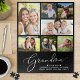 Uma quebra-cabeça de quebra-cabeça preto divertida para a melhor avó do mundo com "vovó" em um roteiro elegante branco, uma colagem de sete fotos de sua família e seus nomes em uma tipografia branca moderna.