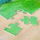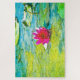 Um lírio de água fuchsia com folhagem de verde limão em água turquesa faz um quebra-cabeça de quebra-cabeça inspirado em Monet.