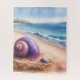 A casca de um caramujo-do-mar violeta se lavou na costa no estilo de uma pintura a aquarela.