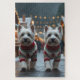 This festive design captures the joyful spirit of the holiday season, featuring an adorable dogs.Nestled in a winter wonderland, complete with a decorated Christmas tree, and beautifully wrapped presents. Snowflakes gently fall, adding a magical touch to the scene, while the vibrant colors of the holiday decorations create a warm and cheerful atmosphere.