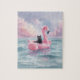 Quebra-cabeça Whimscolor Watercolor Black Cat Flamingo Float