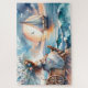 An ethereal watercolor seascape capturing a quiet moment where ocean and soul meet. A graceful woman sits upon a weathered dock, her floral-crowned hair drifting in the breeze as a sailboat glides toward the glowing horizon. Soft indigo and coral tones mingle with drifting clouds, creating a tranquil balance of light and sea. This romantic coastal vision evokes reflection, freedom, and the timeless pull of distant shores. AI generated artwork.