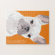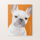 Um pop francês de arte personalizada, quebra-cabeça de buldogue, com uma pintura branca e bonita sobre um fundo laranja profundo que pode ser mudado para qualquer cor, e seu nome.