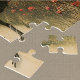 This jigsaw puzzle features a farm and field scene with vintage botanical artwork of White Faced Black Spanish Bantam Roosters and Chicken. The poultry artwork is from a vintage illustration in the public domain, available via the Flickr Commons, and it's placed on a farm journal background with a barn and autumn trees. The White Faced Black Spanish Chicken —often called "Clown Faced Chickens"—are a rare heritage breed available from several major hatcheries and specialty breeders.
