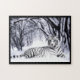 Tigre branco bonito com listras pretas e olhos azuis que encontram-se na neve.