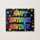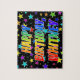 Este design de quebra-cabeça de quebra-cabeça animador e divertido, com o tema de aniversário, mostra a mensagem "HAPPY BIRTHDAY, WHITNEY" com os personagens que têm um espectro colorido de arco-íris inspirado em um padrão de gradiente, além de uma estrela viva molda o plano de fundo. Um quebra-cabeça colorido como este pode ser usado para enviar desejos de aniversário a alguém chamado Whitney. [~Z0000468]
