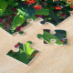 Esta quebra-cabeça apresenta uma foto de uma mancha de amora ao longo de uma cerca de madeira.