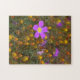 Bring the beauty of nature indoors with this stunning puzzle featuring a vivid mix of wildflowers. A bold purple bloom with a golden centre anchors the scene, surrounded by cheerful yellow-orange buds and lush greenery. A joyful challenge for flower lovers and puzzle enthusiasts alike.