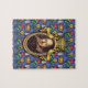 O bardo - neste quebra-cabeça está um retrato de William Shakespeare autor. O retrato está em um quadro oval ornamentado do ouro com fitas e em uma coroa na parte superior. O papel de parede azul do fundo é decorado com os castelos, as coroas dos reis e as flores amarelas e vermelhas, trazendo para ocupar-se do romance, da tragédia e da comédia de seus jogos e poesia.