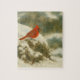 a beautiful northern cardinal perches on a snow bush on a winter morning