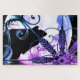 Este é um quebra-cabeça artístico com uma fotografia de um lobo uivando na lua.