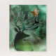 Beautiful earthy hues from Mother Nature in shades of green and brown tones in collage style illustration of a buck with huge antlers and a wild bird or sparrow hawk visiting on this bucks antler.