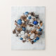 Quebra-cabeça de quebra-cabeça encantadora de uma bela coroa de Natal de pínus cones e ornamentos. Divertimento familiar para os feriados.