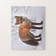 Quebra-cabeça de jogo mostrado com uma impressão de foto de uma raposa vermelha no Parque Yellowstone. Personalize este item ou comprar como está. Imagem do stock