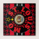 Jigsaw Puzzle black with red hounds-tooth design and with black, white, gold and red concentric-circles design and "ST. LOUIS, MISSOURI CENTER OF THE UNIVERSE" and the Great Seal of Missouri in the center and "ST. LOUIS, MISSOURI" at the top in script with Y-NOT-M. This design is a shout-out to the big beer town St. Louis, Missouri.