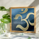 Símbolo de Om de Folha de Ouro Moderno em Fundo Padrão de Onda Azul Escuro.