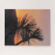 Um brilhante pôr do sol laranja silhueta montanhas e pinheiros em algum lugar no Parque Nacional Yosemite, Califórnia.