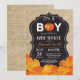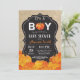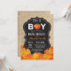 Cartão de Convite para Chás de fraldas de Abate de Abóbora com fundo de abóbora, laranja e quadro relativo. Para mais personalização, clique no botão "Personalizar" e use nossa ferramenta de design para modificar este modelo.