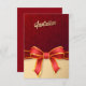 Convite vermelho/amarelo que parece um presente embrulhado.