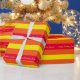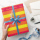 Este papel de embrulho colorido, listrado com laranja, amarelo e rosa quente, é uma maneira divertida de embrulhar presentes. Bela prenda de presente moderno para pessoas que amam cores quentes e brilhantes. O texto padrão diz "Parabéns, Jennifer" - você pode personalizar facilmente o nome e saudar ou excluir o texto de exemplo. Todos os Direitos Reservados © 2014 Alan & Marcia Socolik