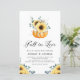Se apaixonem! Este tema do outono casais chá apresenta abóbora aquarela com girassol amarelo, algodão e folhas de eucalipto. Personalize adicionando nomes, data, hora, local e outros detalhes do evento. Este convite para chás de girassol rústico é perfeito para casamentos no outono ou no outono.