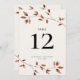 Estas simples mesas de casamento mínimas no outono, cartões de grande porte, apresentam um gráfico de folhas de outono no topo, com um fundo bege claro.