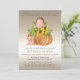 Este convite de chá de fraldas para casais de outono bonitinho e moderno apresenta uma abóbora brilhante de bronze com girassol de cor d'água e um bebê bonitinho no topo com uma coruja ao lado em um fundo de champanhe. Na moda e chic #babyshower #acoesbabyshower #babyshowerCalls #babyshower #conventions #convida #babygirl #babyboy #genderneutro #fofinho #stationery #baby #personalizedasconvites #personalizado