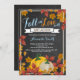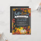 Queda do convite para Chá de fraldas do Pumpkin Boy. Fundo Chalkboard. Convite para Chás de fraldas de outono. Flores e Folhas de Abóbora de Aquarela Azul e laranja. Para mais personalização, clique no botão "Personalizar" e use nossa ferramenta de design para modificar este modelo.