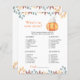 "Uma abóbora está a caminho. Celebrar com este filhote de abóbora de desenho animado temido para festa de chá de fraldas! Bomba de desenho agudo kawaii, de cor aquosa, com chapéu de outono (boné) e folhas de outono. No verso do cartão estão as folhas do outono.