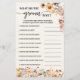 Flores Selvagens de outono O que o Groom disse? Jogo do chá de panela. Mude o texto para o design. Alterar texto para design. Para alterações adicionais (cor da fonte, estilo da fonte ), clique em personalizar, role para baixo e clique no link "Editar usando a ferramenta Design". ** Consulte a coleção de cheios para ver o convite correspondente, jogos de chá de panela, etiquetas e sinais disponíveis* HOW TO PLAY: Os convidados adivinham as respostas que o Groom disse sobre a Noiva